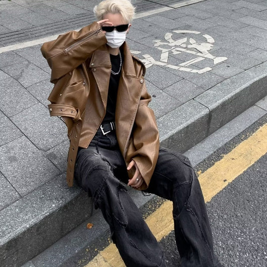 saferido masculine men Shoulder Pad Motorcycle Clothing Leather Coat Autumn High-Grade Short Men's Coat American Fashion Loose PU Leather Jacket