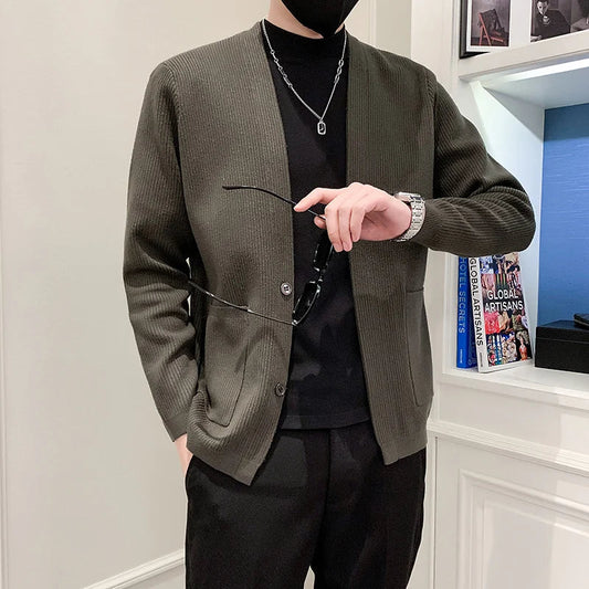saferido Men Spring Autumn Cardigan Sweater Fashion Sim Fit Patchwork V Neck Mens Knitted Cardigan Single Breasted Casual Sweatercoat Man