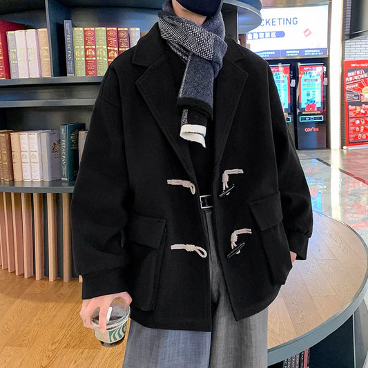 saferido Men Black Streetwear Button Jacket Overcoat Men Oversized Wool Blends Coat Winter Graphic Korean Fashion Trench Coat