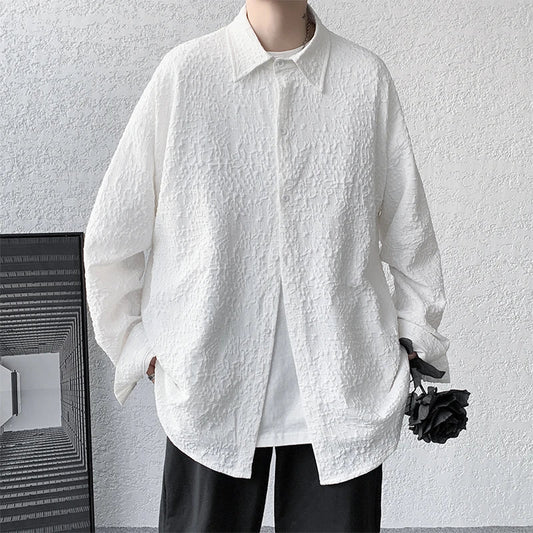 saferido Men's Special Chic Long Sleeve Shirts Korean Lapel Shirt Fashion Casual Oversize Shirt Coat High Quality Solid Simple Clothing