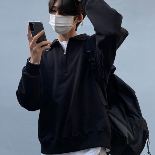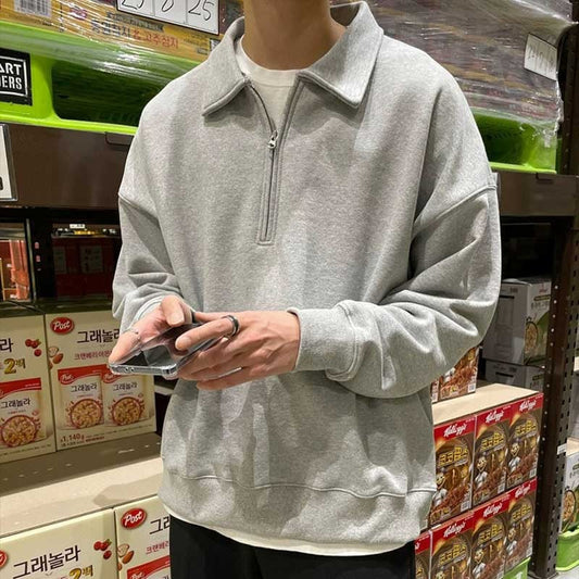 saferido men’s haircut Basic Men's Pullover Sweater Half-Open Zipper Lapel Simple All-Match Coat Korean Spring Solid Color Long-Sleeved Top
