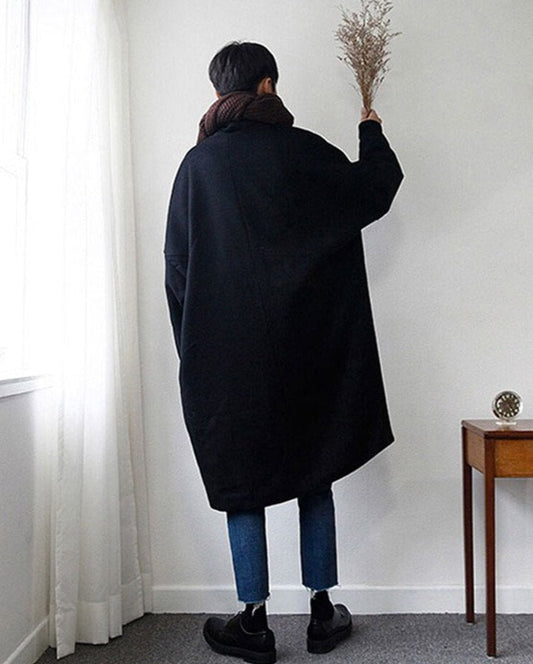 Autumn Winter Loose Casual Grey Black Soft Warm Woolen Cocoon Coat Men Lapel Double Breasted Korean Fashion