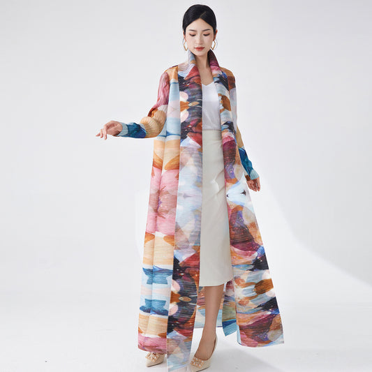 2025 Muslim robe women's long skirt Popular trade robe high-end printing loose lace-up lapel cardigan jacket autumn
