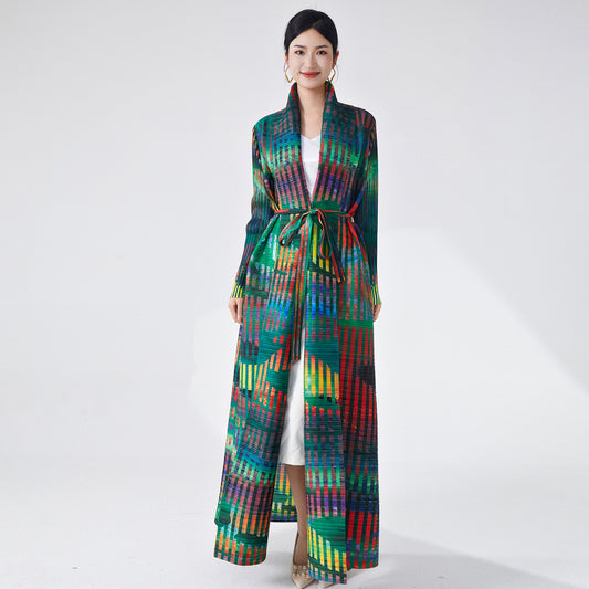 2025 Hot trade Middle East women's robe Muslim Arab robe women's print lace-up loose temperament skirt jacket