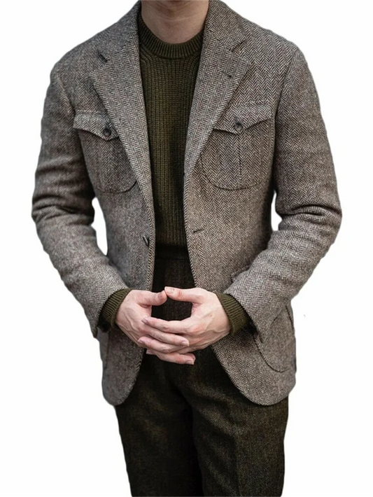 1 Pieces Vintage Business Men Suits Slim Fit Tweed Herringbone Tuxedo Groom Suits For Men Wedding Notch Lapel Jacket Male Blazer