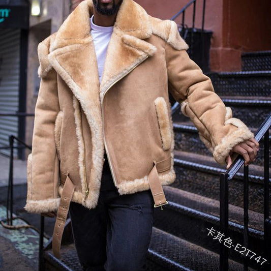 2025 wish new men's locomotive clothing autumn and winter thickened lamb wool jacket fashion trend casual jacket