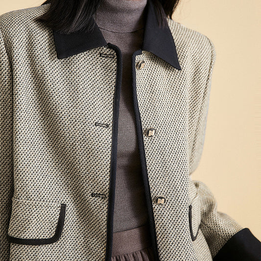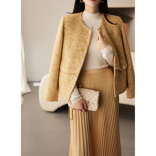 2025 Temperament wool small fragrant jacket high-end tweed lapel short jacket women's autumn commuter women's clothing spring and autumn