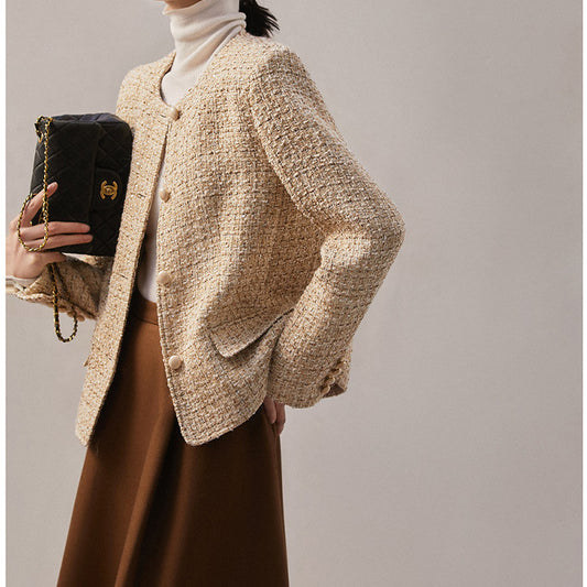 2025 Premium wool tweed small fragrant jacket short spring and autumn new spring clothing high-end women's clothing gold gray