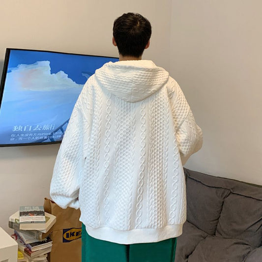 Autumn Hoodies Men's Plaid Solid Color Loose Korean Cardigan Sweatershirt Harajuku Long-sleeved Zipper Casual Hoodie Jacket
