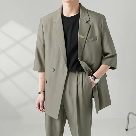 Autumn Men's Clothing Light Luxury Business Leisure Suit Jacket Set Streetwear Elegant Korean Popular Clothes Slim Pants Suit