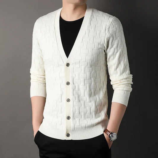 saferido Men's Cardigan Knitted Sweater Outer Wear Fashionable Korean Style Fashion Spring and Autumn Plaid Knit Sweater Jackets 3XL-M