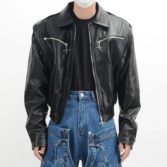 saferido Men'S American Pu Leather Jacket Autumn New Style Loose Casual Comfortable Simple Motorcycle Trendy Short Lapel Jacket Top