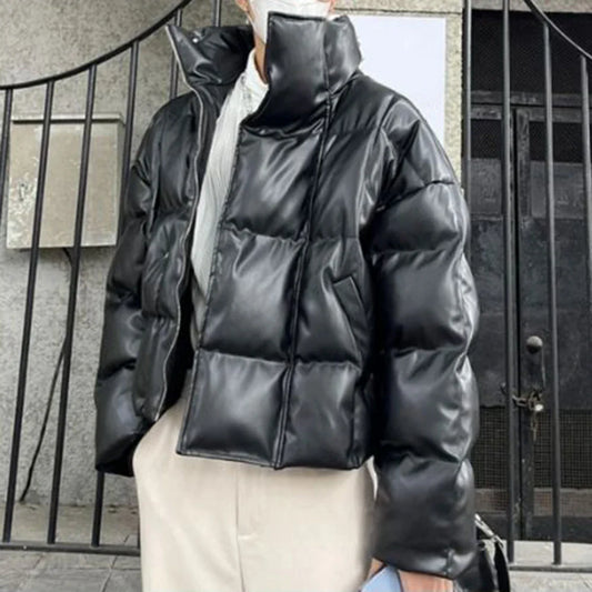 saferido Mens Thickened Y2k Warm Short Pu Leather Cotton Clothing Autumn Winter Genderless Essential Korean Street Solid Color Jacket