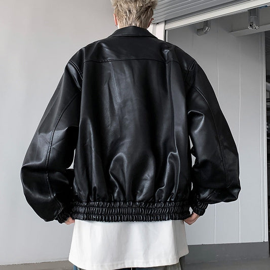 saferido starboy outfit American Retro Cleanfit Short Shoulder Pad Leather Jacket Men's Spring and Autumn Casual Loose Leather Jacket