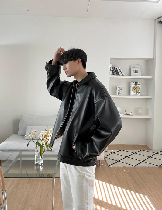 saferido Streetwear Trendy Loose-fit Leather Jacket Autumn Spring Japanese Style Casual Biker Jacket For Students Lapel Motorcycle Clothing