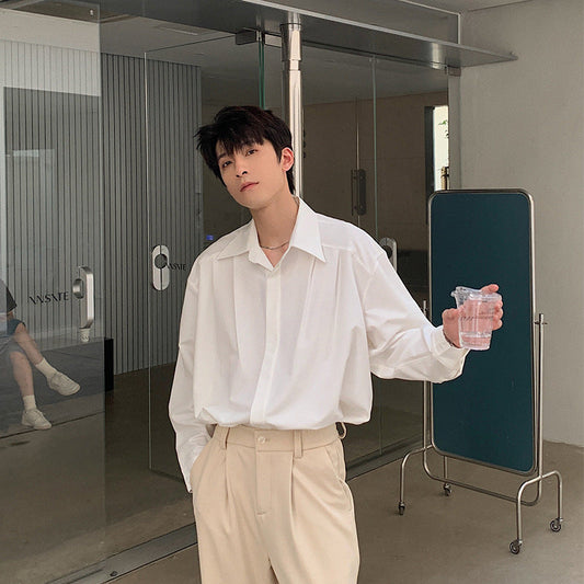 saferido starboy outfit Spring and Autumn Pure Color Ruan Handsome Shirt Lazy Style Men's Long Sleeve Loose Casual Light Mature Style Korean Style Niche Shirt Jacket