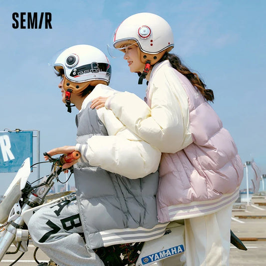 Semir Down Jacket Men Oversize College Style Baseball Collar Jacket Winter New Sports Raglan Top Coat