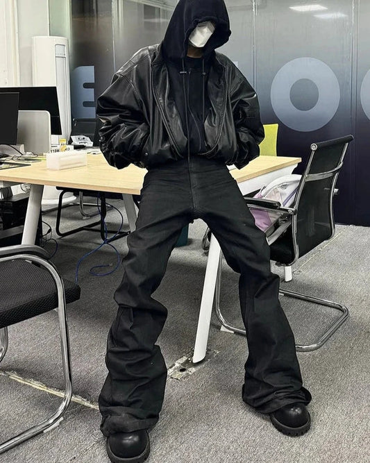 Autumn Winter Oversized Cool Black Thickened Warm Pu Leather Bomber Jacket Men Hood Luxury Designer Fake 2 Clothes