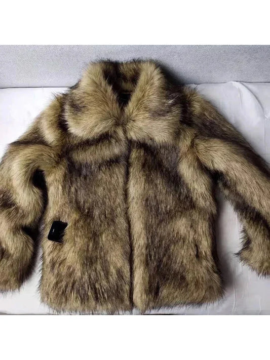 Winter Short Thick Warm Hairy Shaggy Faux Raccoon Fur Coat Men Long Sleeve High Quality Luxury Fluffy Jacket