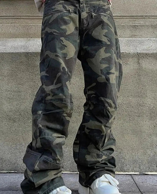 Straight Camouflage Cargo Long Pants For Men Casual Zipper Full Trousers Man Summer Autumn New Fashion Men's Clothing