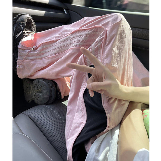 Contrast color dopamine wear quick-drying pants new summer American striped paratrooper pants couple side zipper wide-leg pants