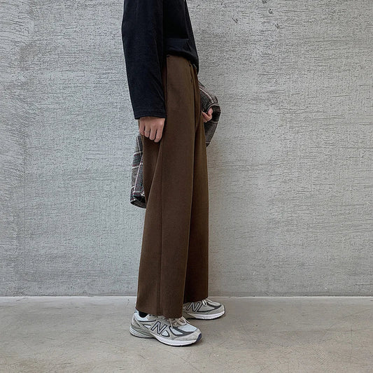 Winter Thick Woolen Pants Men's Warm Fashion Black Brown Casual Pants Men Korean Loose Straight-leg Pants Mens Trousers S-2XL