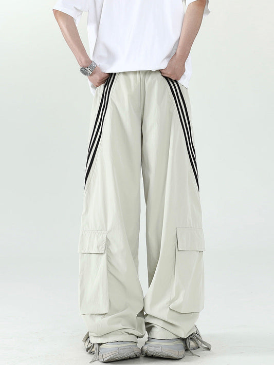 American striped quick-drying assault pants men's summer trendy brand stitching large pocket overalls high street straight quick-drying trousers