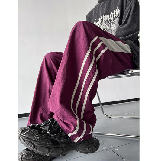 American retro spring and autumn wide-leg oversize design striped assault pants loose versatile casual trousers