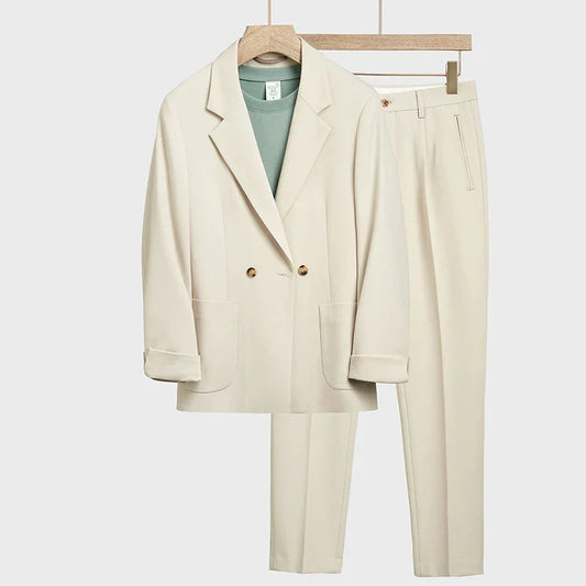Autumn Men's Clothing Light Luxury Business Leisure Suit Jacket Set Streetwear Elegant Korean Popular Clothes Slim Pants Suit
