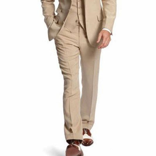 Beige Three Piece Business Party Best Men Suits Peaked Lapel Two Button Custom Made Wedding Groom Tuxedos Jacket Pants Vest