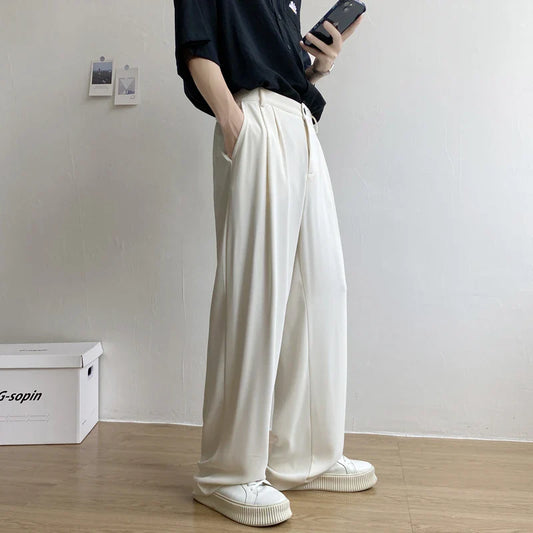 Black Suit Pants Men Fashion Society Mens Dress Pants Korean Loose Straight Wide-leg Pants Men Casual Office Formal Trousers