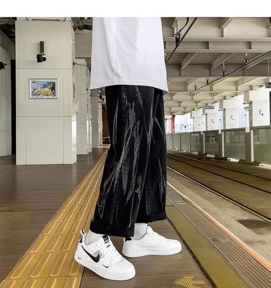saferido Men's Straight Wide Leg Trousers Men's Loose Business Casual Pants Oversize Suit pants Loose Trend Trousers Four Seasons