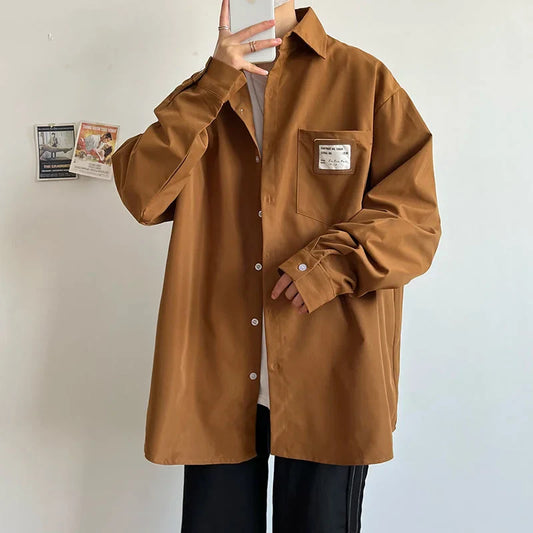 saferido Shirts Casual Lapel Long Sleeve Solid All-match Trend Loose Top Coat Oversize Shirt Four Seasons Men's Clothing