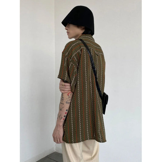 Korean style niche striped short-sleeved shirt summer new men's shirt jacket summer loose casual tops