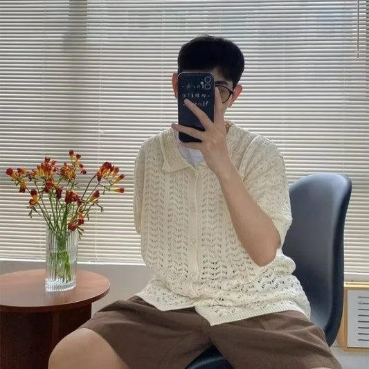 Men Korean Style Chic All-match Hollow Out Half Sleeves Streetwear Breathable Popular Males Knitwear Unisex Hip Hop New