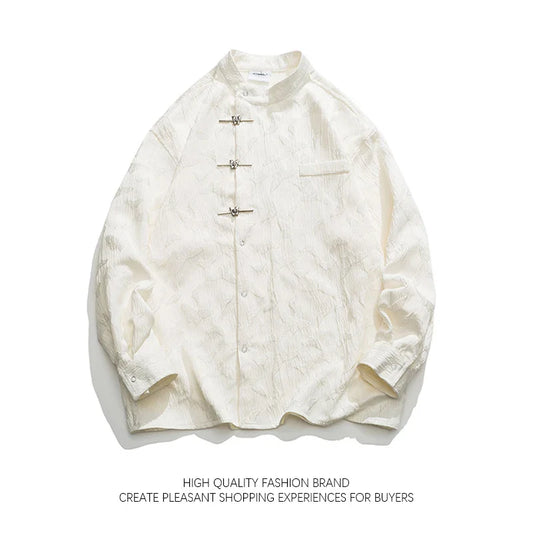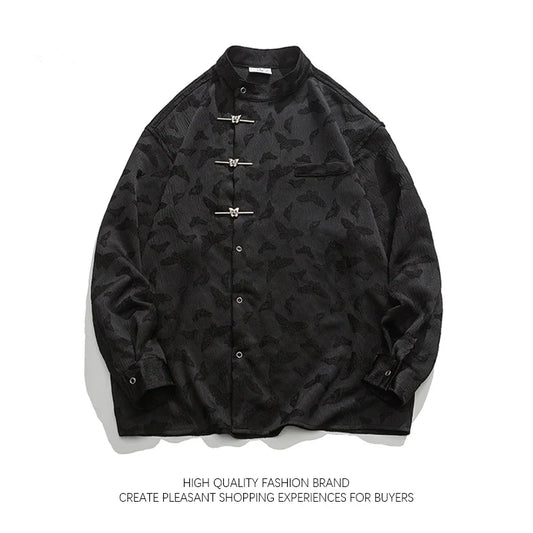 New Chinese Style Blouse Butterfly Jacquard Button Long Sleeve Shirt for Men's Spring Autumn Designer Classic Tang Dress Shirt