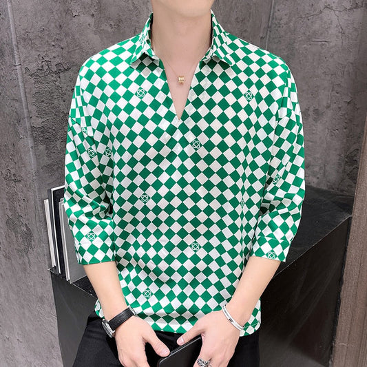 ngland Style Fashion Print Shirt Men Summer Men Three Quarter Sleeve Luxury Shirt Casual Loose Shirts