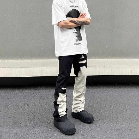Pants Men American Style High Street Vibe Patchwork Casual Chic Full Length All-match Fashion Hip Hop Harajuku Trousers Autumn