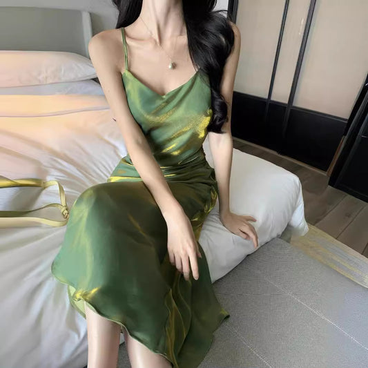 2025 vacation style fish tail hip dress women's summer pendant feeling slim suspender skirt temperament banquet dress skirt
