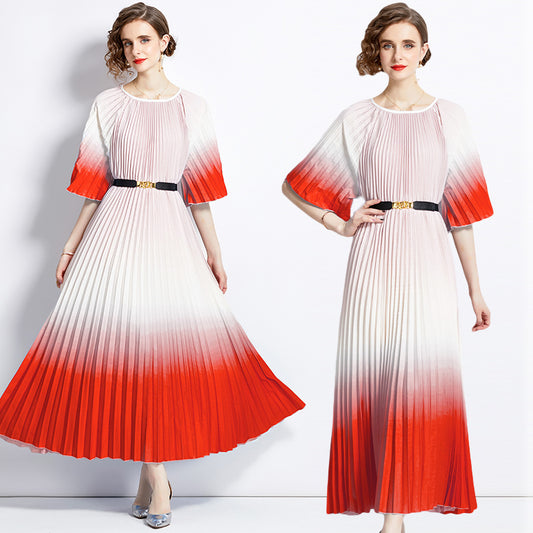 2025 style fashion gradual change color loose dress women's summer new temperament round neck lace-up skirt