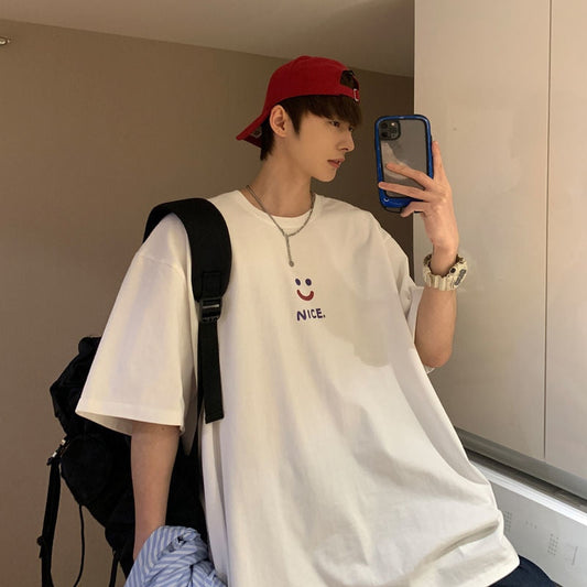 Privathinker Creative Smiling Face Men's Tshirt Loose Round Neck Short Sleeve T-shirt Korean Style Male Tops Summer Fashion Tees