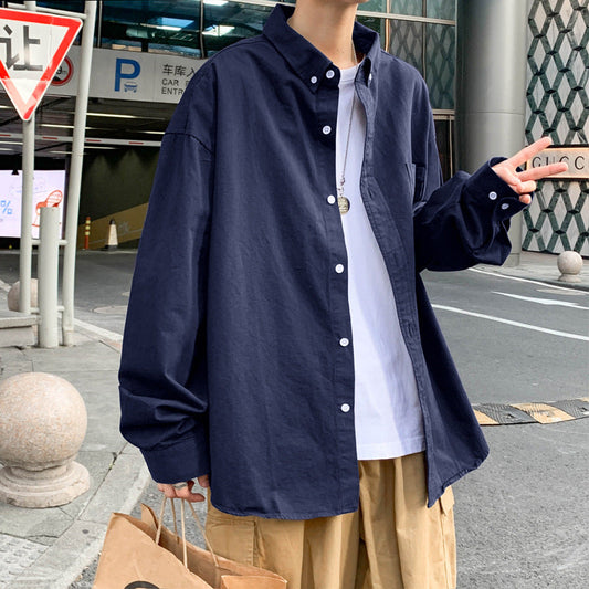 saferido -shop 90s fashion men Japanese Style Cityboy Solid Color Long-Sleeved Shirt Summer Men's Niche Design Sense Stacked Lapel Shirt Coat Fashion