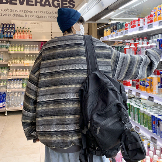 saferido -shop boy outfits Hong Kong Style Retro Striped Sweater Men's Autumn and Winter New Ins Trendy Korean Style Loose Couple Pullover Color Matching Sports Jacket