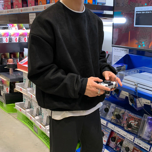 saferido -shop guys clothing styles Suede Sweater Men's Pullover round Neck Loose Winter Thickened Korean Style Trendy Long Sleeve Bottoming Shirt
