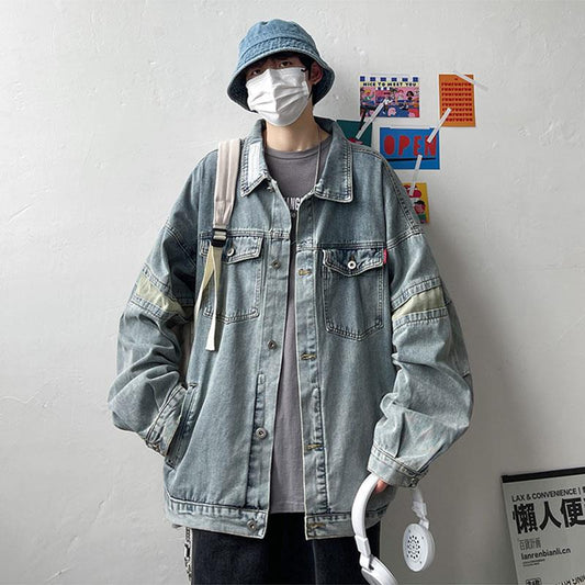 saferido 90s streetwear Denim Coat Men's Autumn Hong Kong Style Youth All-Matching Clothes Ins Korean Style Trendy Loose plus Size Jacket