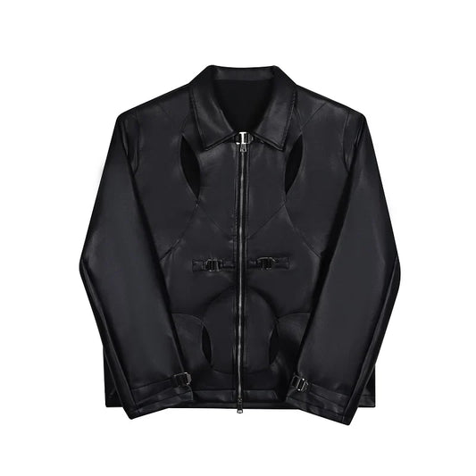 saferido Autumn Korean style Unique ripped hole PU leather jackets for men casual loose metal button PU jackets men,M-XL