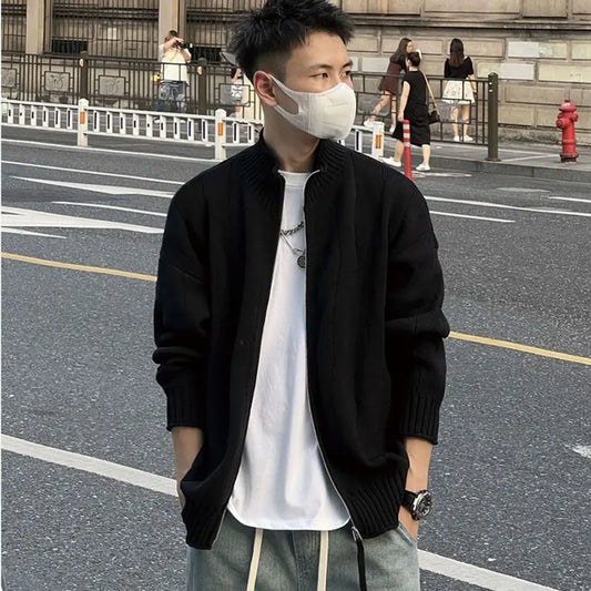 saferido Autumn KPOP Fashion Style Harajuku Slim Fit Outerwear Loose Casual All Match Knitwear Cardigan Solid Zipper Long Sleeve Sweaters