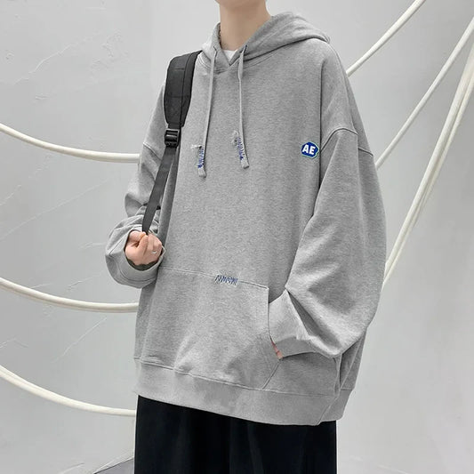 saferido Casual Autumn Man Hooded Sweatshirts Classic Solid Color Loose Oversized Hoodie College Style Japanese Hoodies Designer Tops