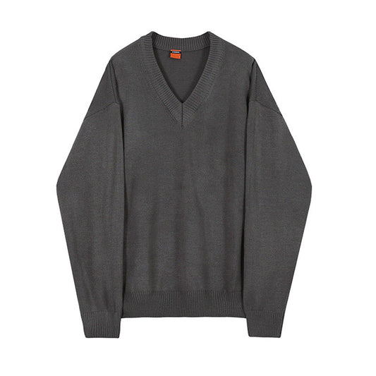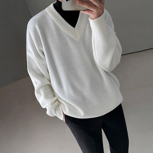 saferido fall outfit men Sweater Men's Autumn and Winter Korean Style Trendy Sweater Jacket Loose Lazy Style White V-neck Pullover Sweater