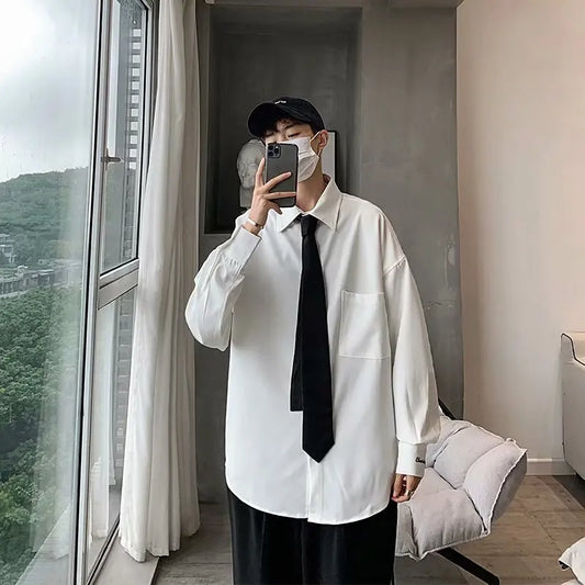 saferido homecoming outfits for guys Long Sleeve Shirt Men's Korean Style 2024 New Lapel Casual Lazy Style Shirt High-Grade Ruan Handsome Shirt Jacket